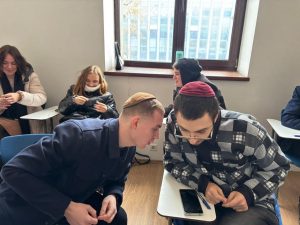Далі всі разом слухали, а дехто навіть пританцьовував під нігуни — хасидські наспіви, що глибоко проникають у душу. Окрім цього, студенти аналізували слова, які звучали в нігунах, занурюючись у їхній зміст.