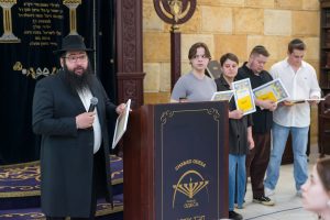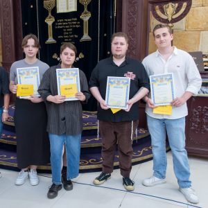 У день 3 тамуза, коли послідовники хасидизму вшановують пам’ять і вчення Любавичського ребе, у синагозі відбулася урочиста церемонія нагородження. Керівник проєкту Наталія Мержієвська та рабин університету Фішел Чичельницький подякували студентам за щирість, відповідальність і глибоке розуміння важливої місії — зберігати пам’ять. Студенти отримали дипломи й грошові сертифікати за свій внесок у збереження пам’яті про Голокост — щоб ця трагедія більше ніколи не повторилася.