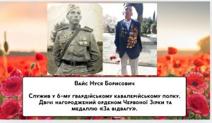Студенти Leaders JUniversity вшанували пам’ять своїх рідних, які воювали на фронтах Другої світової. Заздалегідь вони поділилися фото близьких, що були нагороджені орденами та медалями за мужність. Проректор університету Наум Йосипович Маламуд запалив поминальну свічку за душі загиблих героїв і ветеранів.