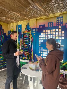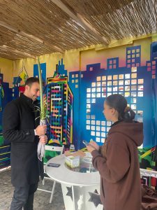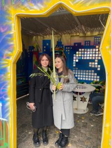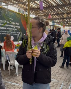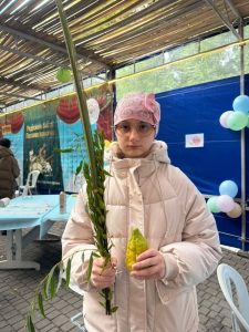 На Дерибасівській працювала святкова сукка, у якій усі охочі могли благословити чотири види рослин, виконати заповідь перебування в курені, а також дізнатись більше про сенс і традиції Суккоту. Наші студенти не лише самі виконували заповіді, а й допомагали іншим, пояснюючи значення символів та супроводжуючи благословення. Завдяки їхній ініціативності та щирості багато людей змогли відчути святкову атмосферу та духовний зміст свята.