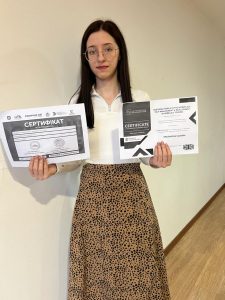 Приємно зазначити, що студенти Leaders Juniversity Odesa отримують нові знання не тільки в стінах вишу. Нещодавно Лея Кружкова, яка вчиться на 3 курсі за спеціальністю 241 “Готельно-ресторанна справа”, отримала сертифікати за проходження  “Майстер готельного обслуговування” і “Адміністратор готелю”, а також курсу “Діловий етикет (у формі SCORM)”. Крім того, Лея отримала сертифікат за участь у міжнародному семінарі на тему “Оцінка персоналу на робочому місці: селфменеджмент та розвиток у сфері HoReCa та туризмі”.