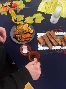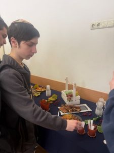 І, звісно, жодне свято не обходиться без частування. Усі учасники скуштували плоди, якими славиться земля Ізраїлю, у порядку, зазначеному в Торі: пшеницю, ячмінь, виноград, інжир, гранат, оливи та фініки.